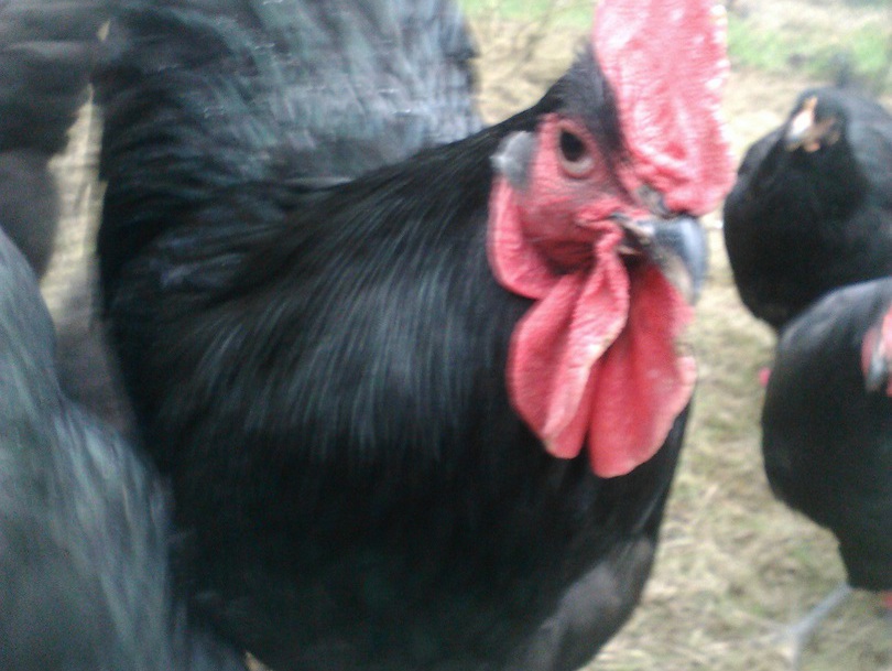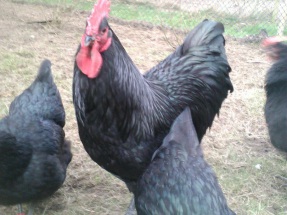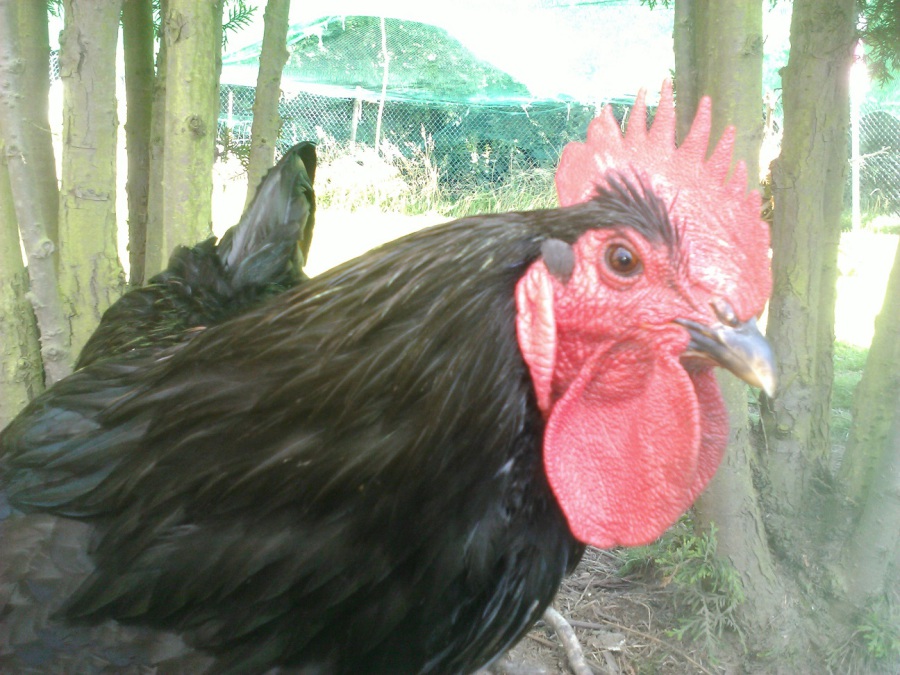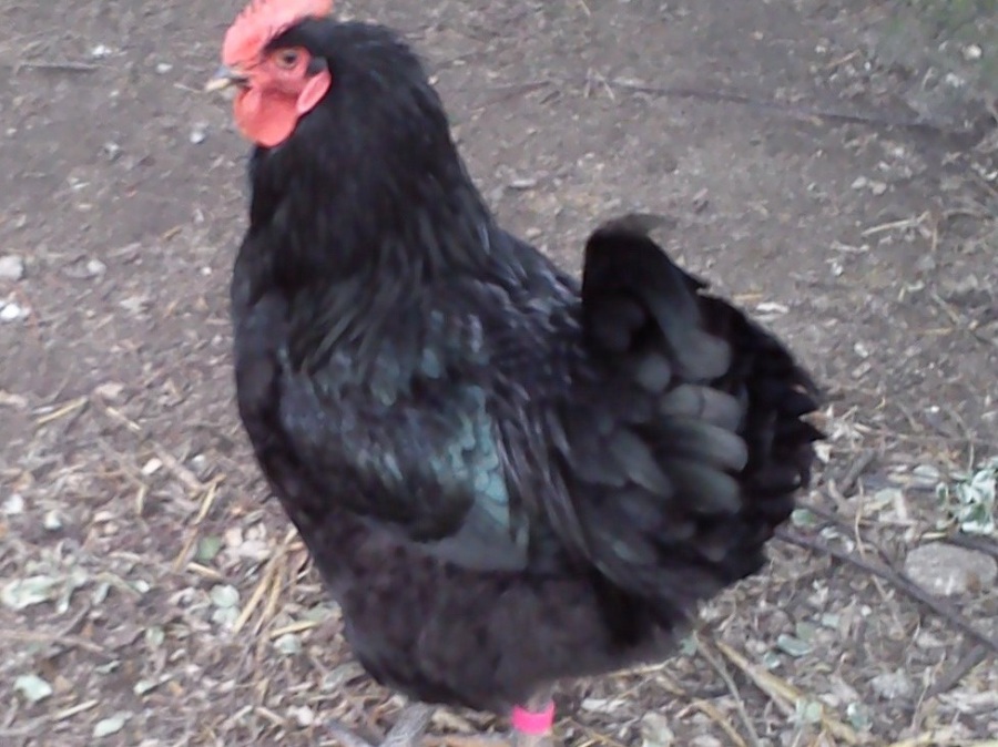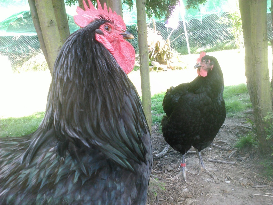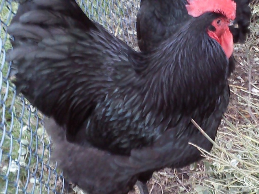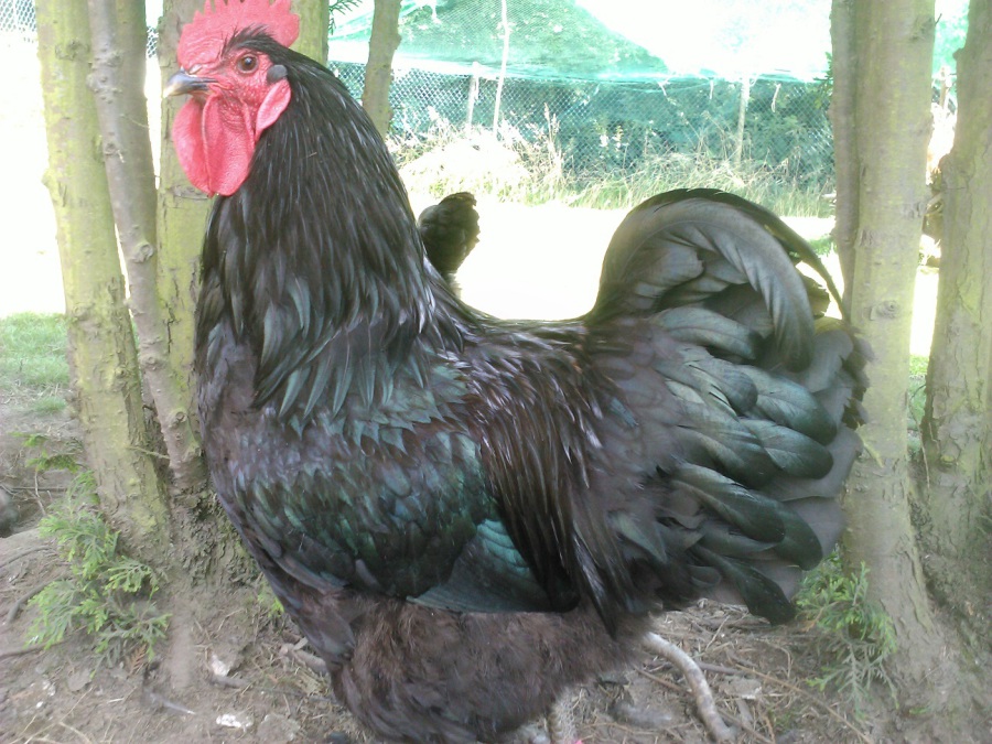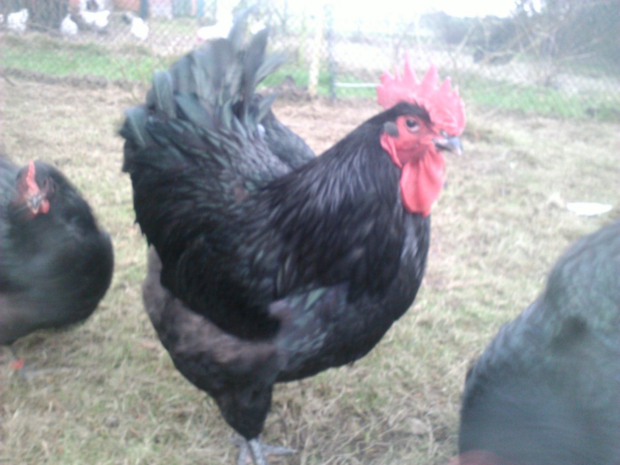 Wir halten unseren Hahn mit sechs Hennen und wie bei den anderen Zuchstämmen, ist auch hier der Hahn blutsfremd. Auch von unseren schwarzen Jersey Giants bieten wir